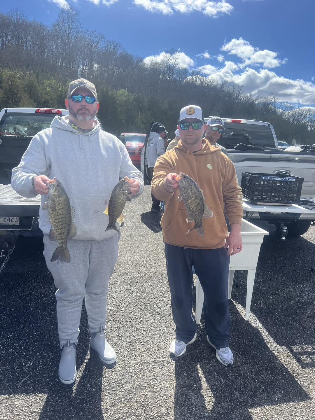 The first ever Cincinnati Bassmasters’ Open at Brookville Lake was a huge success! The weather cooperated with a frigid but clear morning for our 41 boat field. The past week’s weather and fluctuating water temps made it tough for some, but others figured the bite out and brought in some quality Brookville Bass! Cole Wess/ Nathan Raleigh took 1st place (over $1000) with a 17.17lb bag followed by 2nd place Bert VanFleet/ Trey Quinlan with 14.26lbs and 3rd place Matt Cozad/ Austin Thome with 11.68lbs. Big bass for the event was a 5.06lb Largemouth weighed in by Mike Vining/ Mark Williams ($410). This event had great payouts and raised $500 for Cincinnati Youth Bass. We greatly appreciate all who came out to support our club along with Cincinnati Youth Bass. Special thanks to Zak Williams for taking on Tournament Director for the event and all of the support from Lance Ringhand. Their coordinating efforts along with support from other Club members made this Event a success!